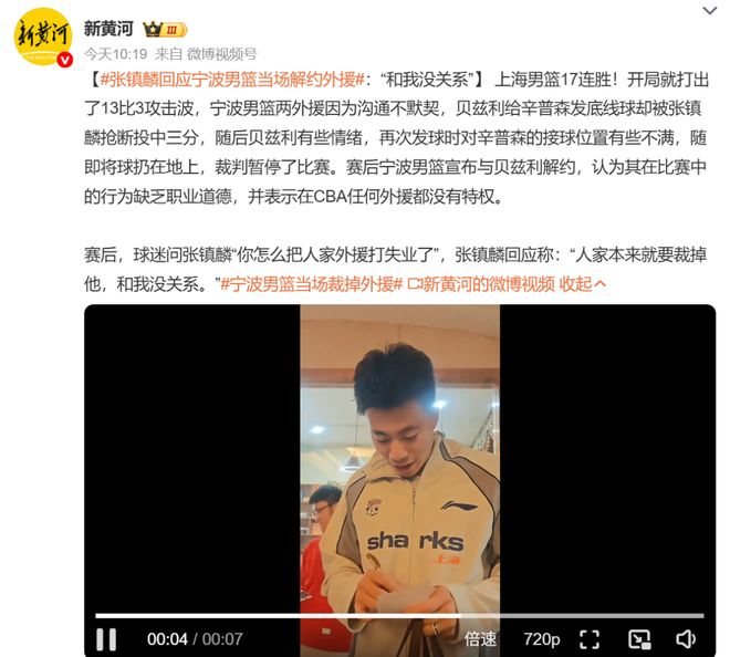 这一下“内讧”成了导火索,宁波男篮在比赛结束之后立即发了公告,宣布跟贝兹利解约。